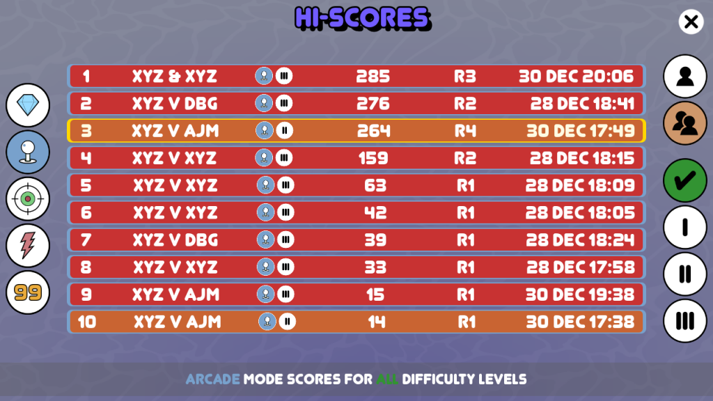 - The hi-score screen now automatically gets displayed once you end a game and you have placed on it.